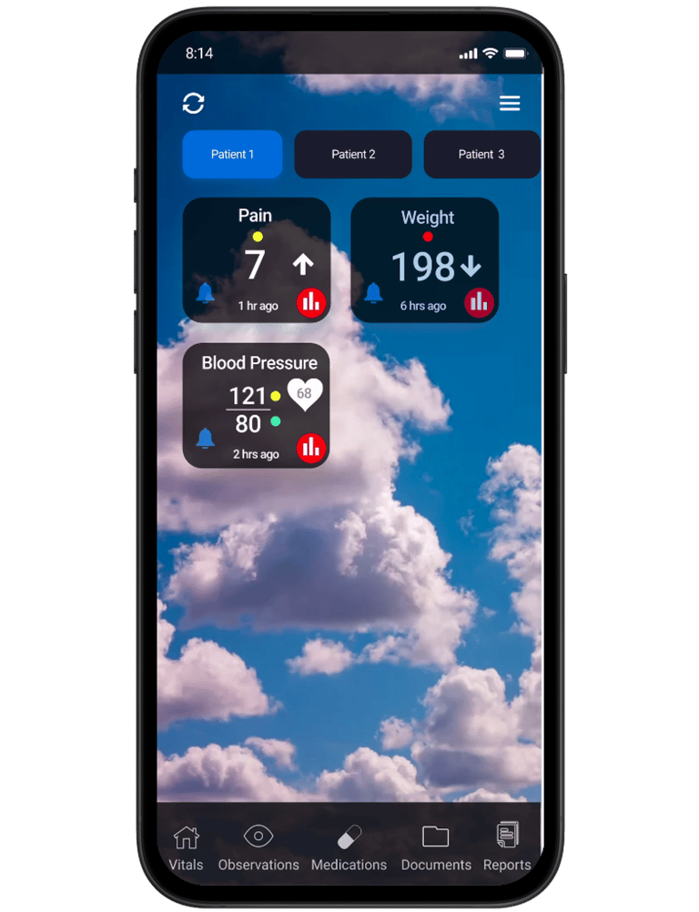 Quickly record and monitor key health data like blood pressure, weight, pain level, and symptoms so you and your care team can spot changes early.