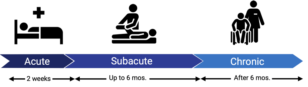 Chronic Stage: After six months, long-term therapy focuses on maintaining progress and adapting to long-term needs.